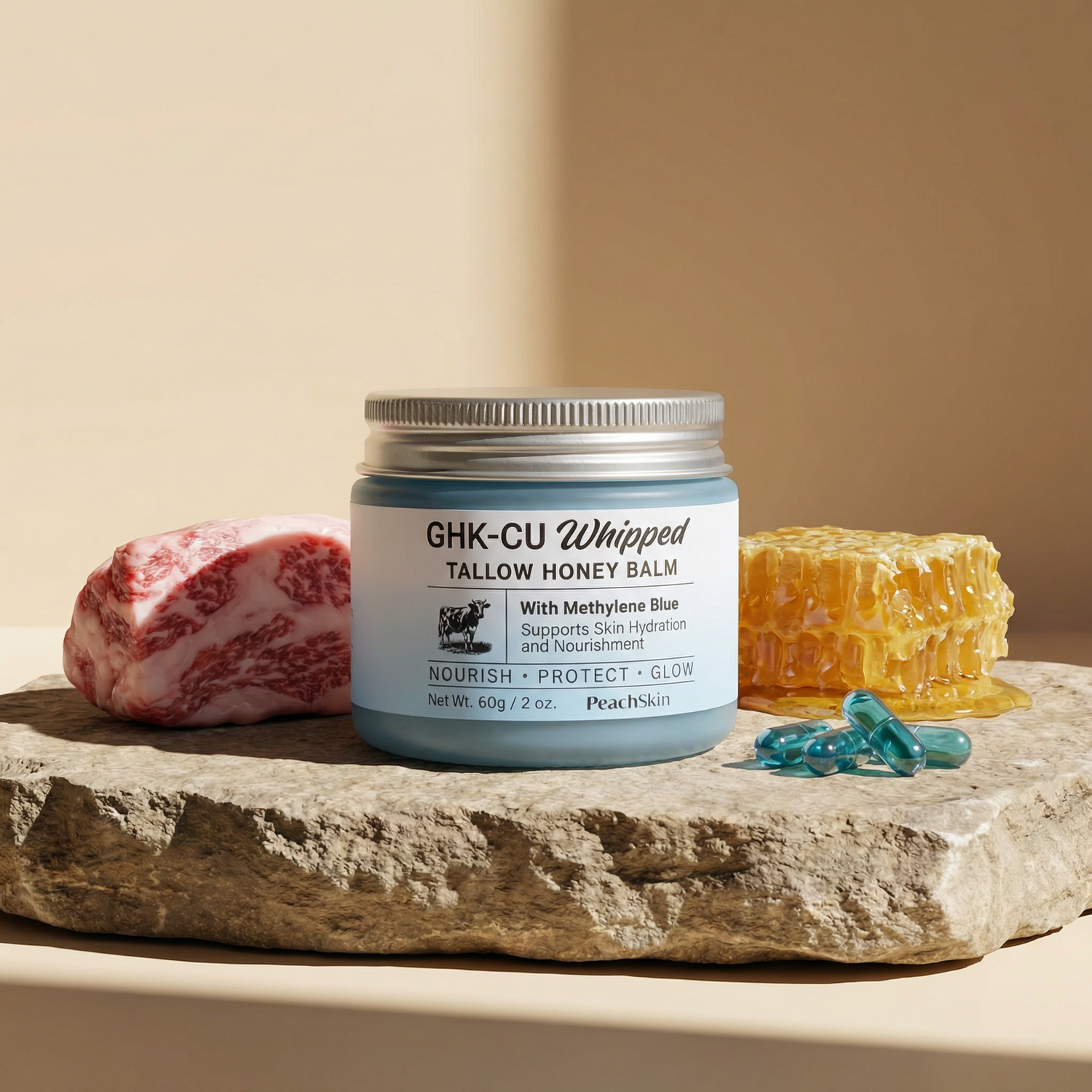 Fights acne while deeply hydrating and strengthening your skin. Including ingredients proven to actually work. Such as Tallow, honey, and GHK-CU copper peptides.